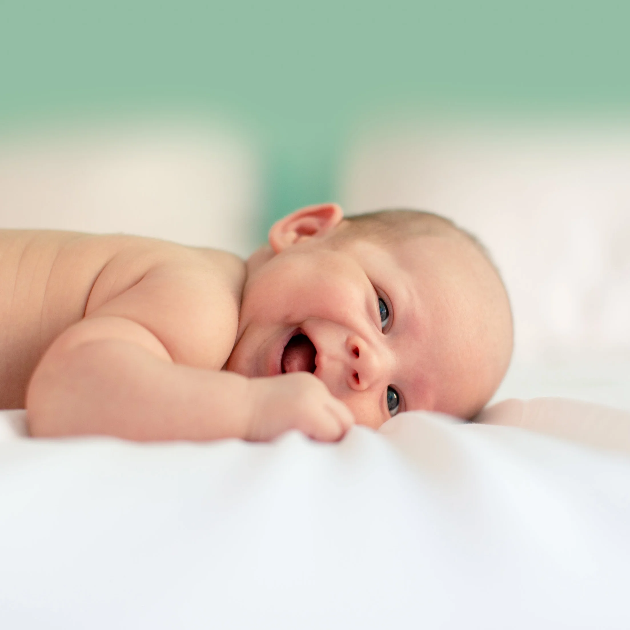 Side to side- With baby’s mouth open, rub the outside of their lower gums and watch their tongue follow your finger